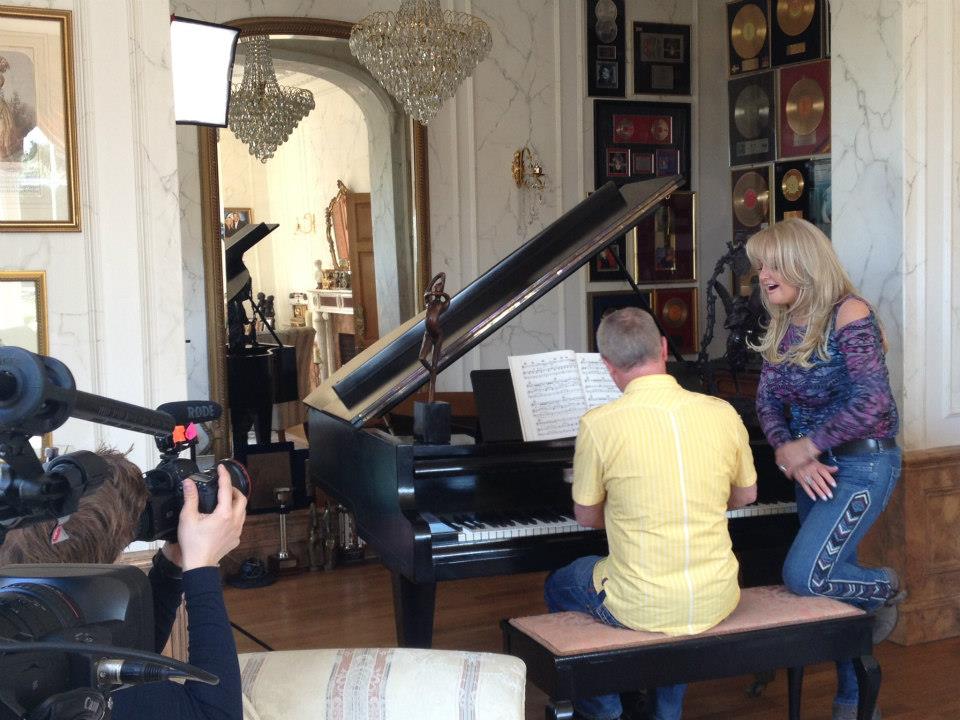 Uk Eurovision 2013 Entrant Bonnie Tyler with the Eurovision TV Crew from Sweden shooting her Postcard.