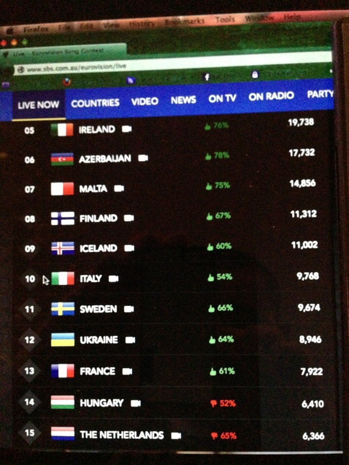 Australian fans voted on their favorite songs in this year's Eurovision Grand Final 2013. Photograph courtesy of SBS