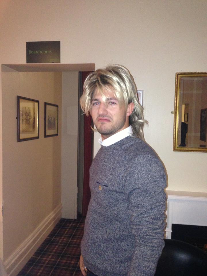 Josh James aka Josh Dubovie who represented the UK at Eurovision in 2010 with “That Sound’s Good To Me”, was at the event. Now if you all know Elaine she can be very persuasive. She even tried to lure Josh into the band – but he looked more Bon Jovi than Cheryl Baker with the wig on him. 10/10 for effort Elaine!
