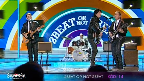 ‘Come On Babe (Meg akarom mondani)’ is song four tonight, performed by four-piece band 2Beat or not 2Beat. We have a very bright backdrop for the band who sound more than a little like the Beatles. Three guitars and a drumkit. It’s a fairly authentic take on the 1960s band. It even has the trademark ‘middle 8’. It scores 30 from the jury.