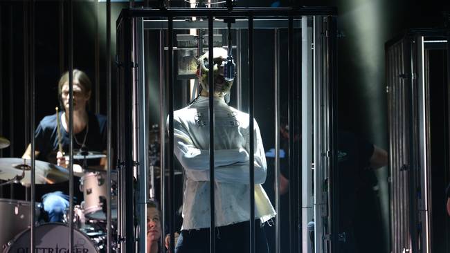 Song 1 is from Outrigger with the song Echo. We have all the band in cages with the lead singer in a