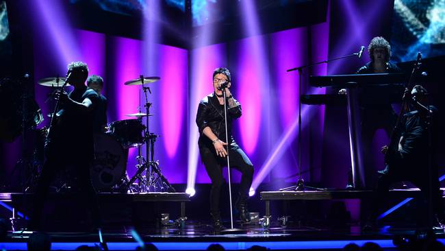 This song won the exit poll at last nights rehearsal. Song starts with tv screens covering Oscar and the dancers.