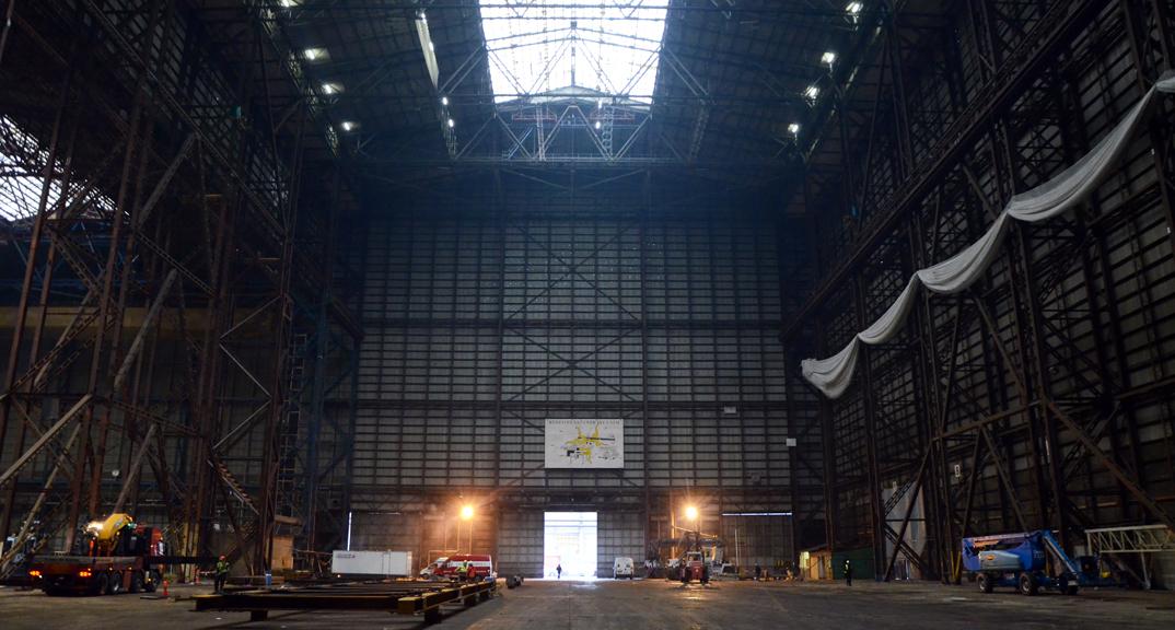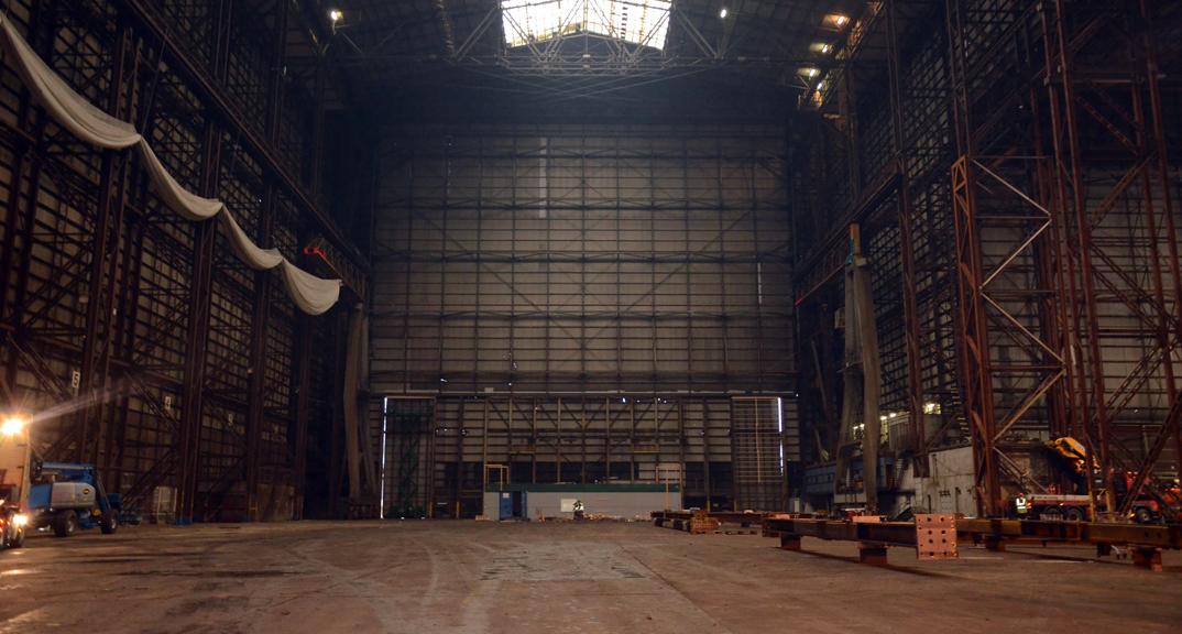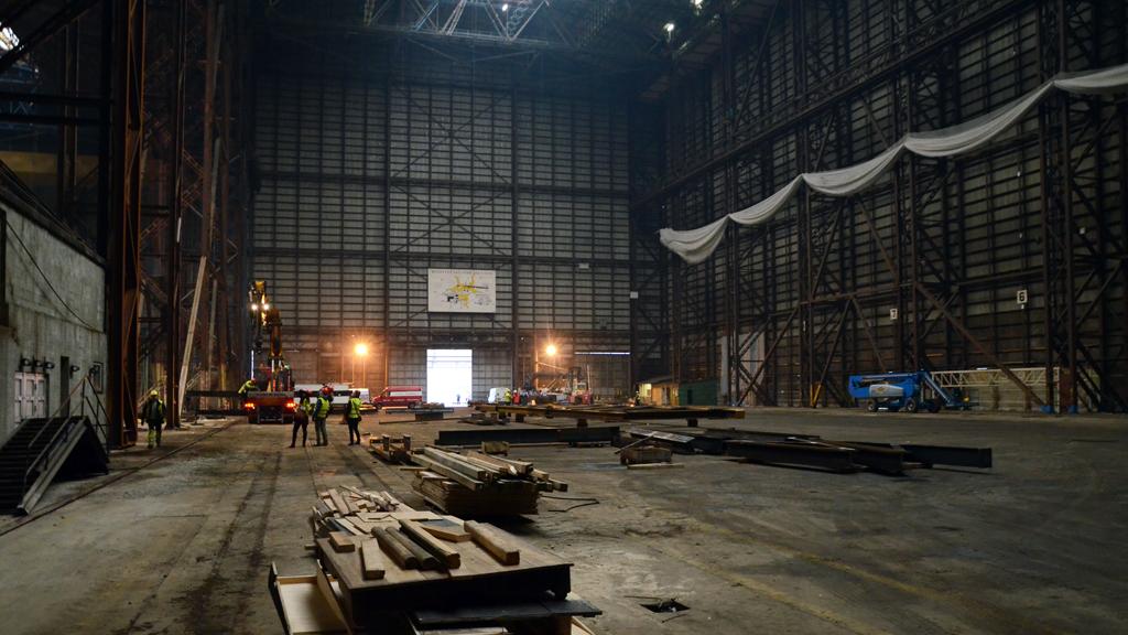 Work on the roof and the Seating Tiers of the B&W Hallerne will need to see supporting structures put in place. Giant steel structures are being erected.