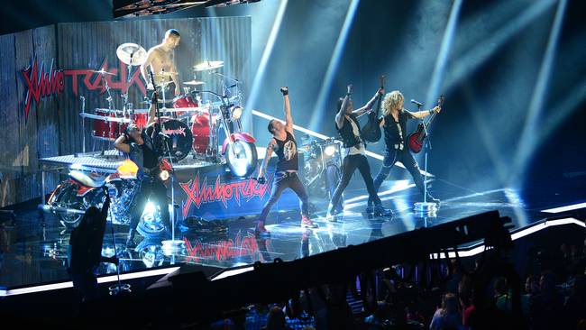 Its the a solid heavy metal song that starts us off. Motorcycles on the stage and the drummer has his top off which