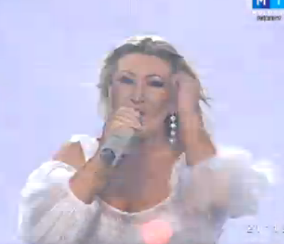 Back from the break, we speak to the trendy reporter in the Green Room. He shows us his tablet with the SMS/text number on, and talks to Cristina Scarlet, Anne Gulko, Curly and Diana Staver. They all tell us to vote for their songs.