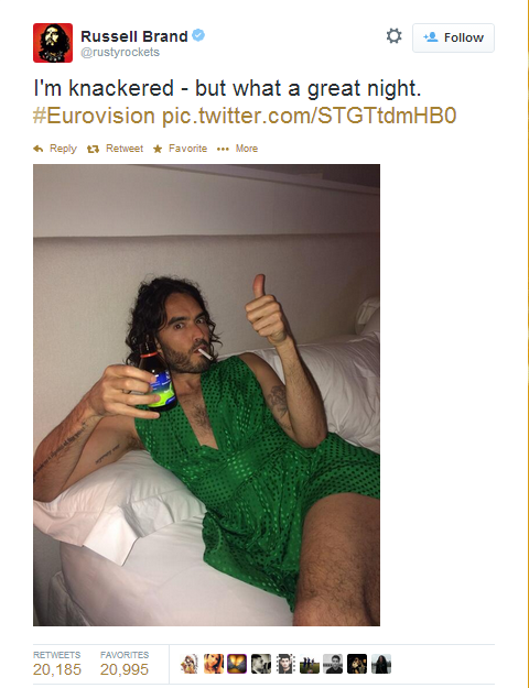 That honour went to British Comedian Russell Brand who tweeted a picture of himself in a dress paying homage to Conchita Wurst.