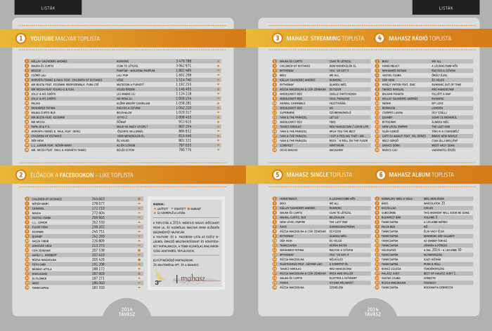 The half-year local YouTube views, Facebook likes, MAHASZ record sales, radio and online streaming figures have been released. Last year there was a strong presence from ByeAlex in the same national ratings chart but this year has seen a further increase in the popularity of the A-Dal Eurovision selection.