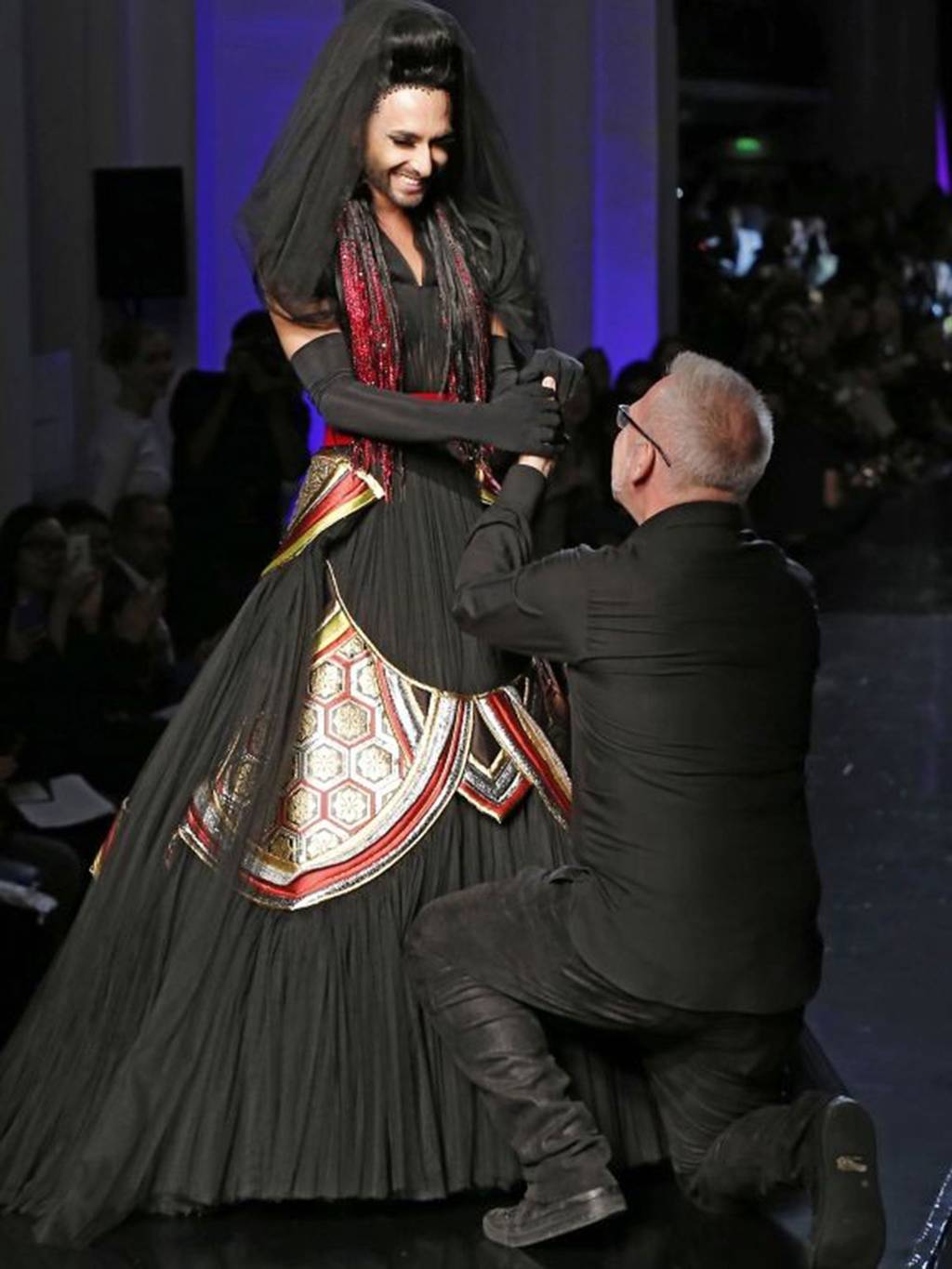As you can see Jean Paul Gaultier was very excited and happy to have Conchita as the jewel in his Catwalk Show by tweeting