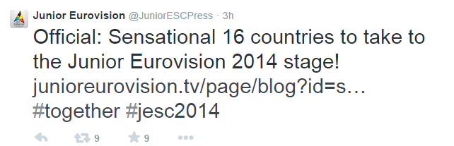 16 countries will participate at Junior Eurovision 2014. This is the biggest number of participants in the contest in 7 years. Congratulations JESC team. A lot of hard work has gone into getting so many broadcasters to commit to the growth of the contest!