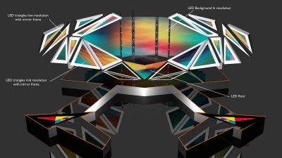 Overall, there will 508 square metres of LED used in the stage. The stage design features: