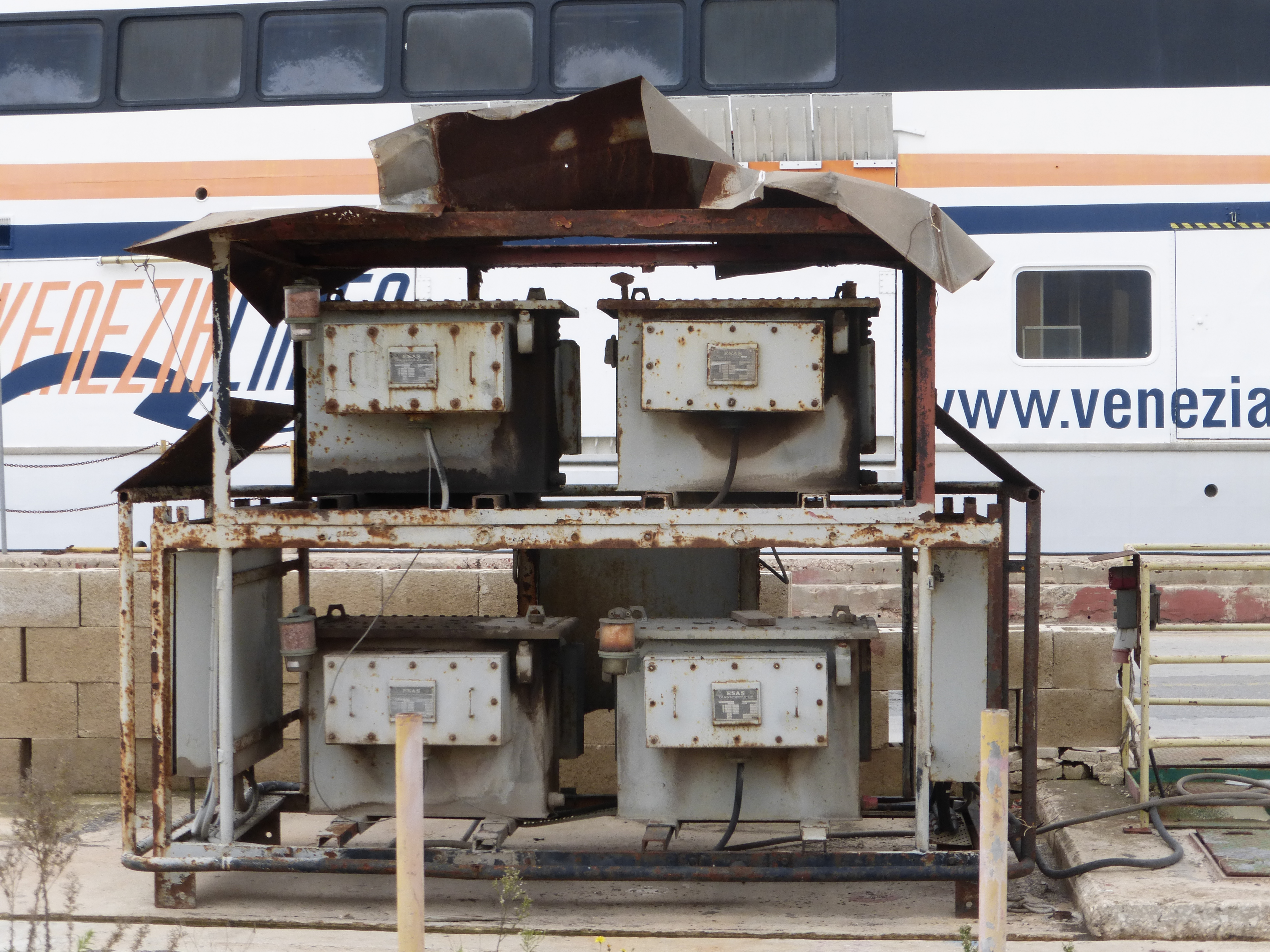 Now we look around the surrounds of the area we are in. The technical area outside the press tent, some old industrial machinery on the dockside.