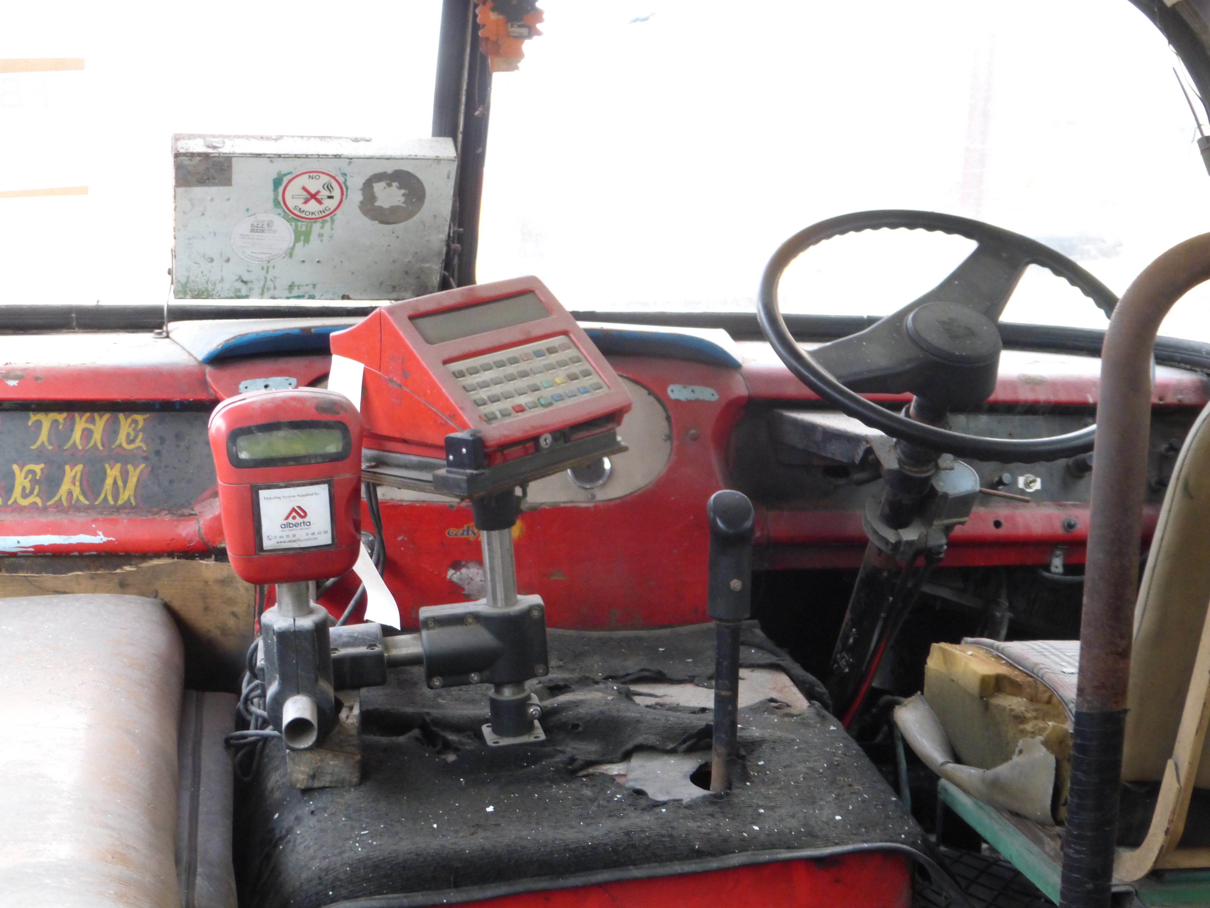 The headline picture and this picture are from the inside of the fleet of buses left at our disposal outside the arena. Really quaint and old worldly but I bet this one has not had a clean in years.