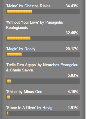 The qualifiers are Minus One, Nearchos Evangelou feat. Charis Savva , Panagiotis, Doody, Giannis and Hovig.