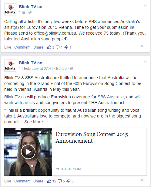 Blink TV are the company that SBS (Australian National Broadcaster) have employed to search for the all important song and act represent Australia in Vienna.