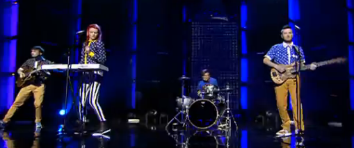 John’s opinion – Robin – he of Malcolm Lincoln fame – still sports the scars he got in a Moscow semi-final. But despite these he has a very upbeat piano-heavy song that he sings with a mischievous smirk (most of the time anyway). I could imagine Paul Heaton of the Beautiful South singing this. Robin may not have hit one or two of the challenging notes, but it gets polite applause from the crowd. And the prize for best prop so far is the small supply of chives the keyboardist has with him all the time.