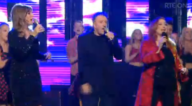 So we’re in dear old Dublin for more national final fun and games. Will the sings be upstaged again? Well to kick off we have Niamh Kavanagh, Paul Harrington and Linda Martin regaling us with some classics from down the years. Strangely they’re all former UK entries. And Waterloo.