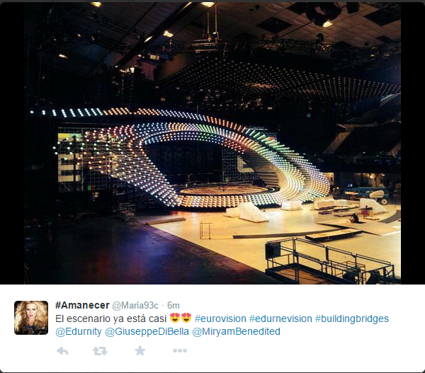 Pictures are coming out of the Eurovision stage as it takes shape in Vienna. Singers from the contest have posted photographs of it – like that of Edurne from Spain.