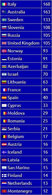 Here were the top 25 countries in the results of the Scottish Preview Party