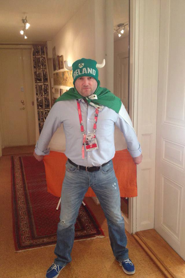 In 5th Place we have our newest recruit to the team James Scanlan. He does not have an accreditation this year but is out in Austria with the team fulfilling a very valuable role, supporting us with filming, photos and editing out with the Eurovision Press Centre. Below he can be seen wearing his interpretation of this years Georgian entry with his ‘Warrior’ style headdress – he did not realise that he was not expected to wear the whole warrior to pull off this look.