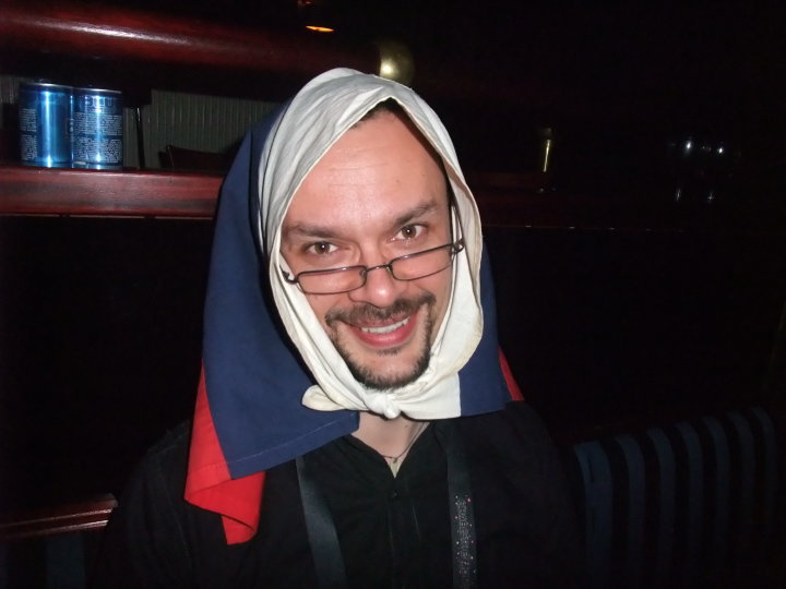 In 3rd place we have author/editor John Stanton who is wearing “Slovakia” – the whole of Slovakia!!! He has adopted the drunken little old lady look and if you ask me he wears is fabulously well. You may also note that he was sporting the “bearded lady” look long before Conchita Wurst. He has the “you have been naughty and I will peer at you over the rim of my spectacles” expression which he has shown me many times over the year. The question is – will we ever see this look again. Slovakia have not entered the contest since 2012 so John may have to think of a different designer for his next outfit.