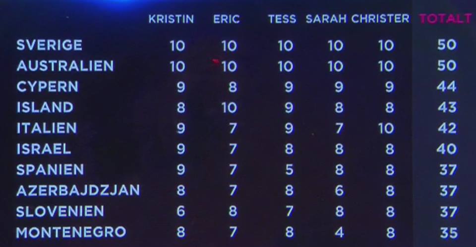 So this would see a tie at Eurovision should the points be replicated from the Swedish National Show – between Sweden and Australia.