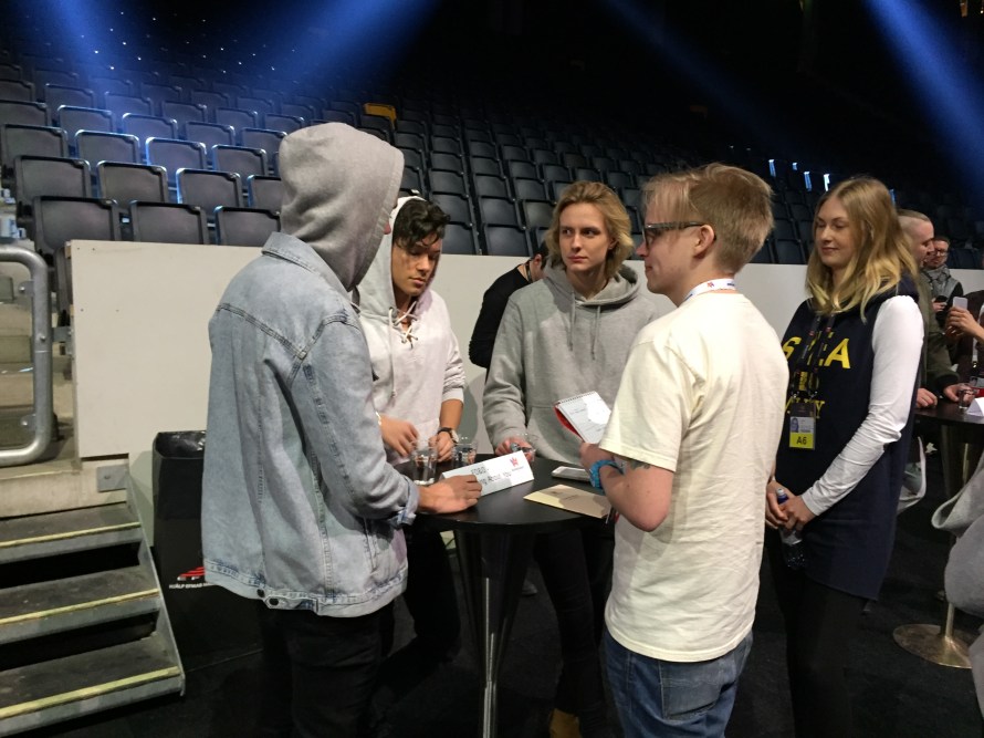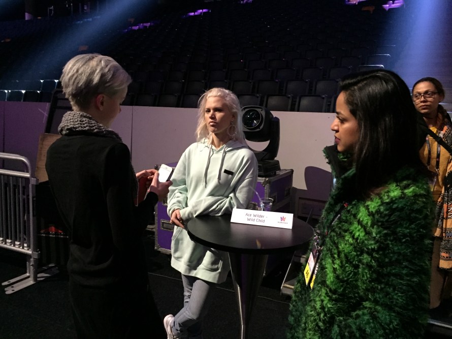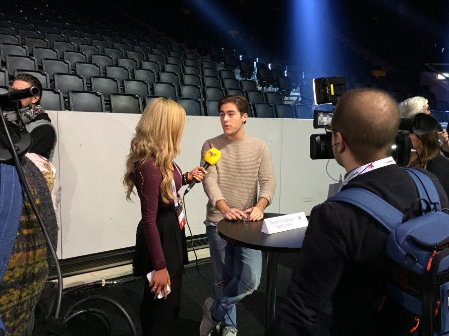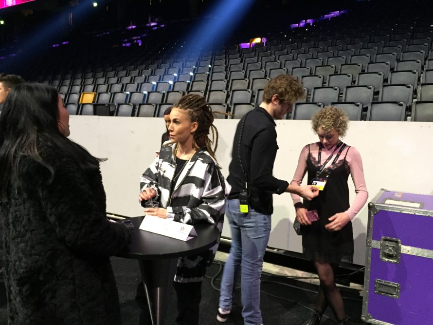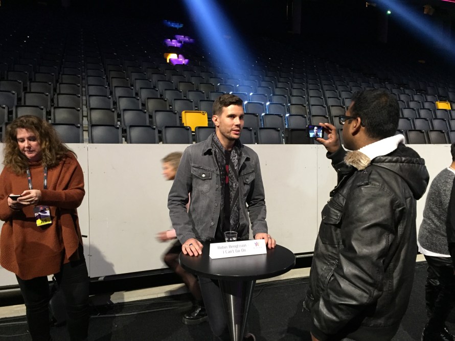 Before rehearsals started there was a meet and greet in the Arena where Christer Bjorkman introduced each artist onto the stage before we had a group photo opportunity. This was then followed by a speed interview opportunity with each artist. You can see some suitable photos taken from this session in this article.