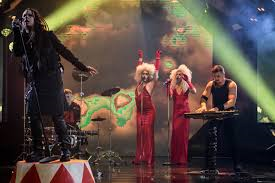 Our last song of the evening certainly is an eye-opener. Two drag queens as backing singers wearing goldfish bowl helmets and blue faces. It has all a very crazy goth feel to it. We have fire around the drums and its all very frenetic really. Its a crazy performance of a crazy song. Plus it lasts barely two minutes which is relief to be honest. It could shock and reach the superfinal though.