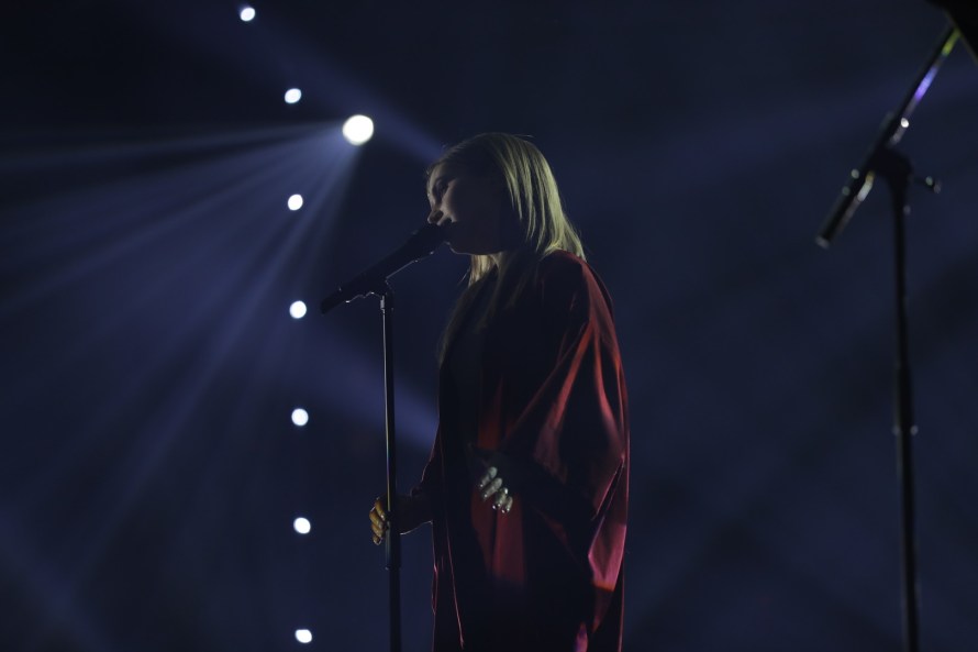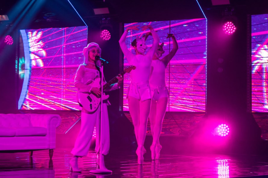 Iiris is up next with her song. She starts off lying on a sofa. Her voice is modern and contemporary very Meghan Traynor in its sound and style. She is accompanied by two female dancers in masks. She is very lively and confident in her delivery. She also dons a guitar towards the back end of her song. Nt sure if it will threaten to proceed but lively enough and well received by the audience.