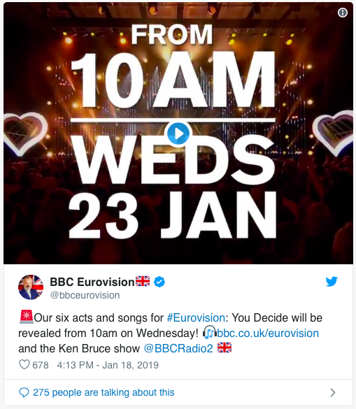 Tagged as: Eurovision 2019, Eurovision You Decide, UK