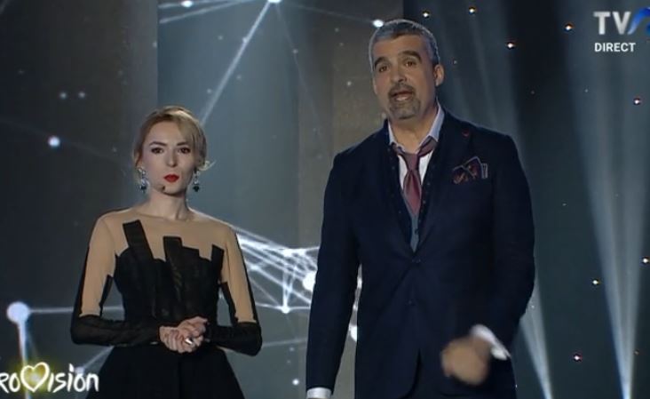The hosts of tonight’s semifinal: Aurelian Temisan and Ilinca Avram