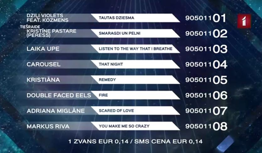 Here we go! Remember, only 4 acts tonight will make it to the final on the 16th! First up tonight we have a song in Latvian, curious to see how this goes!