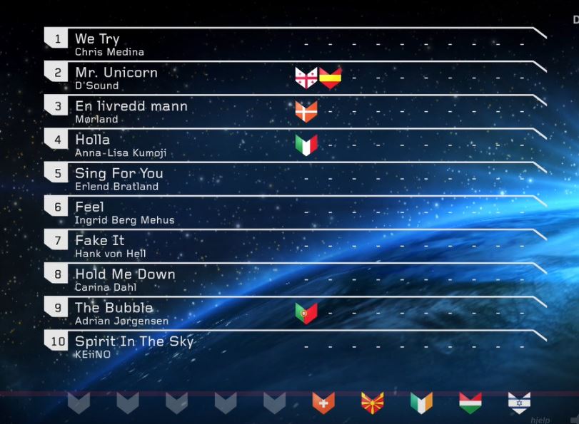 This year’s host Israel give the last flag… and it goes to KEiiNO! The only flag they got, which is baffling!