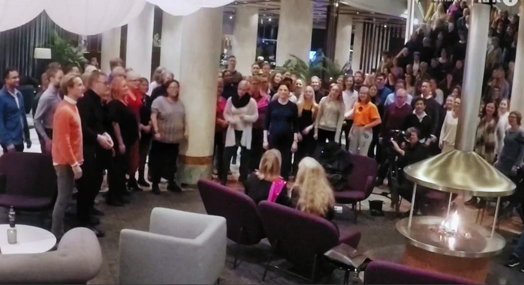 Now Bobbysocks! are being flash-mobbed with their winning entry La Det Swinge – a Eurovision classic if ever there was one!