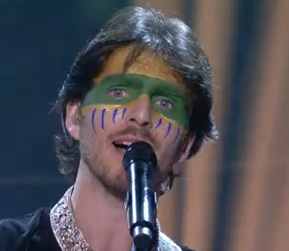 A group that are clearly from the folk music mode. And a good folk offering too. The pluck away on their acoustic guitars and there’s also a keyboardist and drummer. A bass drum mind, not a whole kit. And there’s interesting face paint. If the public want something very very Portuguese this is the one, and I like this style anyway. The verse-chorus-verse-chorus is something you’d expect, but it’s nicely done. I’d like this to do well. but there may be bigger hitters in this contest than this.
