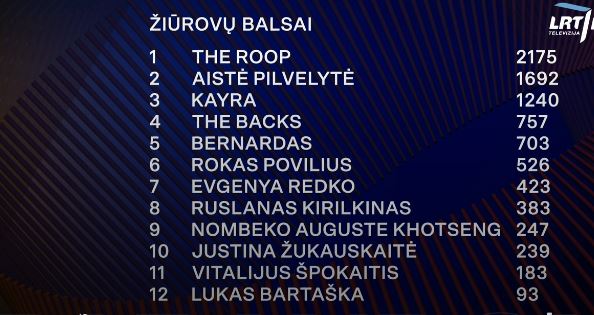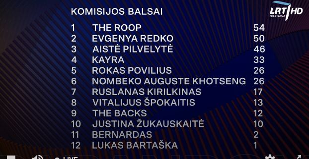 All the songs tonight have been quite different in terms of style and delivery, but there have been some stand outs for me Aistė Pilvelytė is my hands down winner from tonight and I’m expecting her to sail into the semi finals. I suspect Ruslanas Kirilkinas, Evgenya Redko and THE ROOP will also do well, and would like for Bernardas to do so too, though I’m still not sure a conservative televote won’t scupper that. As for the elusive last place, I think either kaYra or Vitalijus Špokaitis – just for the sheer bonkersness of it all!