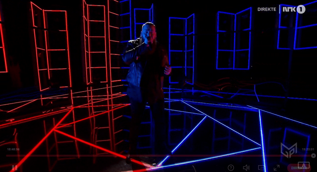 As with the previous semi finals the 4 acts will be split into 2 duels with the winner of each duel competing in the “Gold Final” to win the ticket to the Grand Final on 15th February 2020. Also as in the previous semi finals, one of the acts already pre-qualified to the final will perform and tonight, it’s the turn of Akuvi ,, who will perform “Som du er”.