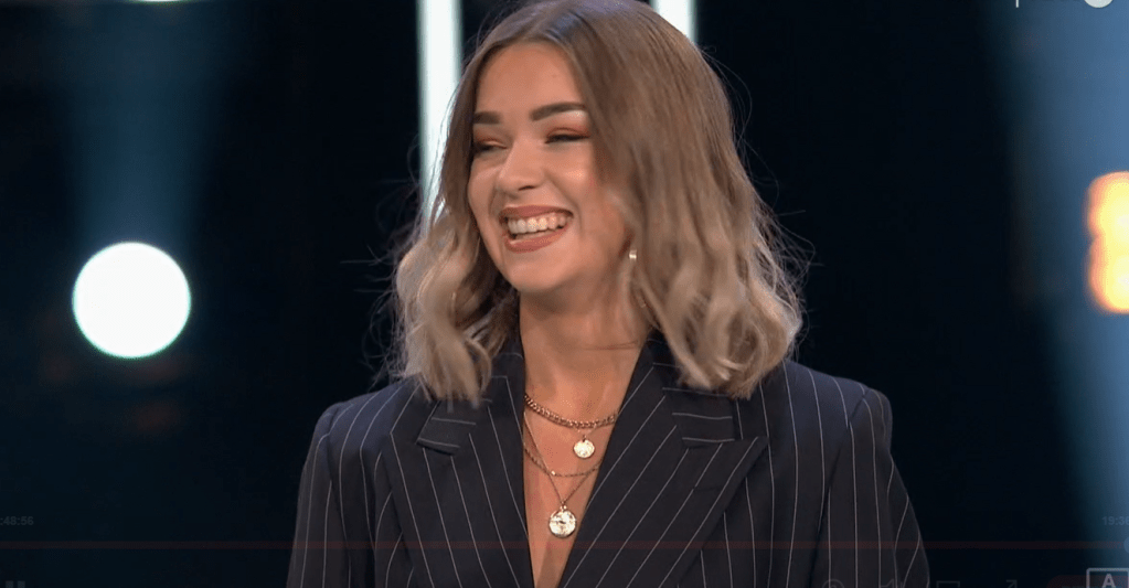 Now we have Akuvi, tonight’s already pre qualified finalist introducing herself , before performing her song ” Som du er”