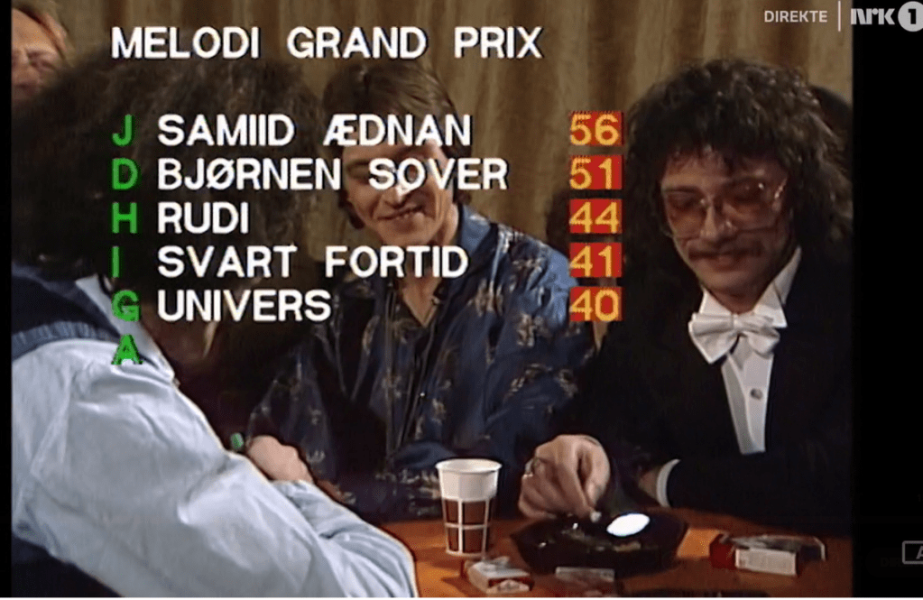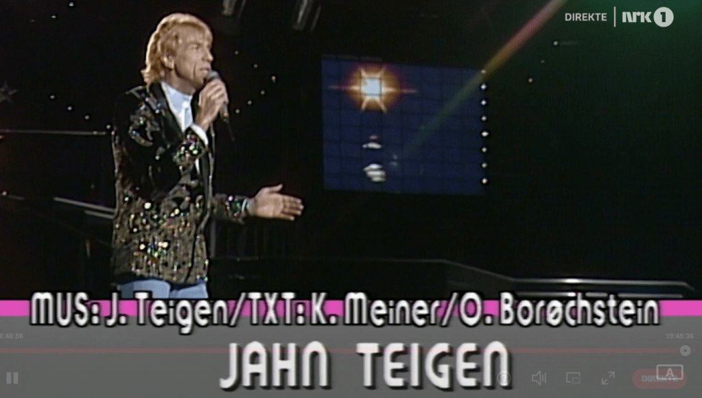 Now we ‘re seeing more memories of past Melodi Grand Prix shows. Oh…they’re doing a tribute to Jahn Teigen , he who was famous for the nil points in Eurovision 1978 ……What a legend !