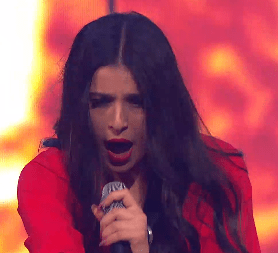 Hayk – sorry, HAYK – takes us down several tempos. He’s on a stool, sort of Westlife stylee, but in a trendy white jacket and black broad-brimmed hat. It’s heartfelt and pretty good for a ballad. He’s also got a slightly soul-ly voice, and his range isn’t bad either. However, there might not be anything to really grab you.