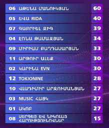 Athena Manoukian leads, with EVA Rida second and Gabriel Jeeg third.