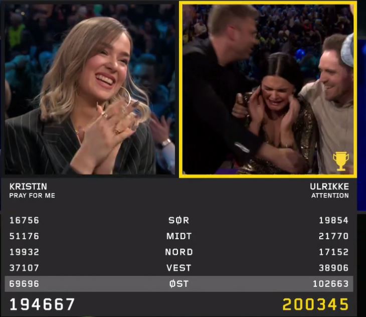 Who will be Norway’s winner? We’ll find out in less than 3 minutes.