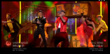 Oh…this is interesting! we have here a combination of country music,and irish jig , with four female dancers at the front of the stage , ” doing a Riverdance ” ( not in the same league as Riverdance though!) . I like the fact that they are singing in Swedish and give them credit for their efforts , it’s very full on with a lot going on on stage . It’s ….different!