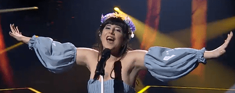 There’s black & white TV in this one. It’s another one with a couple of instruments on stage, but a big orchestral backing track. That suits the gentle nature that – maybe, just maybe – has a hint of something performed by a certain Salvador Sobral a few years ago. Very Portuguese, very sweet, and very classy. I like this a lot.