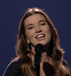 A stood-up performer now, in a long floor-length dress. There’s a bit more of the fado about this, but a bit more uptempo, and she has a very good voice, almost a bit folksy. I love a good folksy voice. The song is very well constructed and really suits her. There’s also obviously some backing singers off stage who provide very good harmonies. Best thing tonight so far for me.