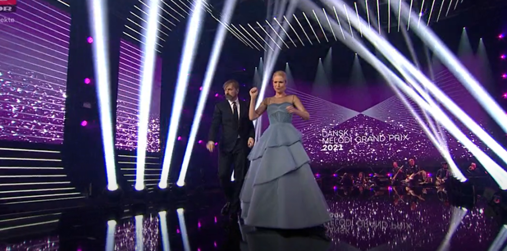 Tonight , Denmark holds the 2021 edition of its Dansk Melodi Grand Prix to choose who will fly the Danish flag for them at this year’s Eurovision Song Contest in Rotterdam . Tonight we have 8 acts instead of the traditional 10 fighting for the golden ticket to Rotterdam. This year, due to ongoing Corona virus restrictions in Denmark , there will again be no live audience and Denmark’s national broadcaster DR have decided to go with a smaller venue, their studios DR Byen . The hosts tonight will be Martin Brygmann and Tina Muller .The winner will be decided by a mixture of public and jury vote , with the 8 acts being reduced to three for a Super final and the winner of the Superfinal will go on to represent Denmark in Rotterdam.