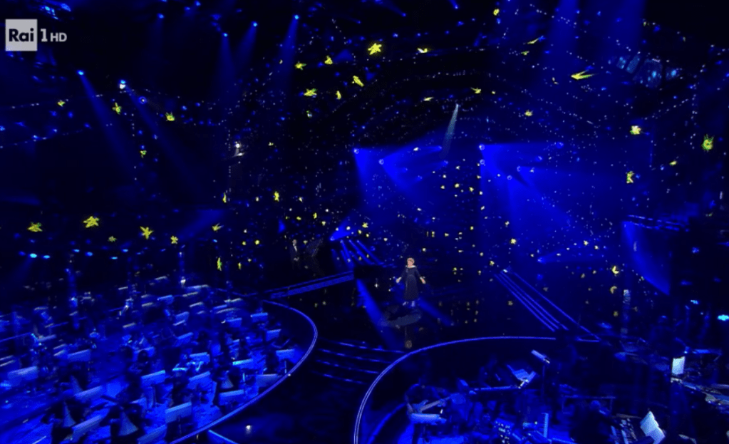 Orietta is singing a melancholic song. This is unfortunately so dated that makes me just want to drink another sip of water. Sanremo is a prestigious stage that embraces all genres and generations. You can’t fault her voice; dream of a happier place and escape this stressful times. After all, the magic of the festival is that you never know how a song will touch your soul.