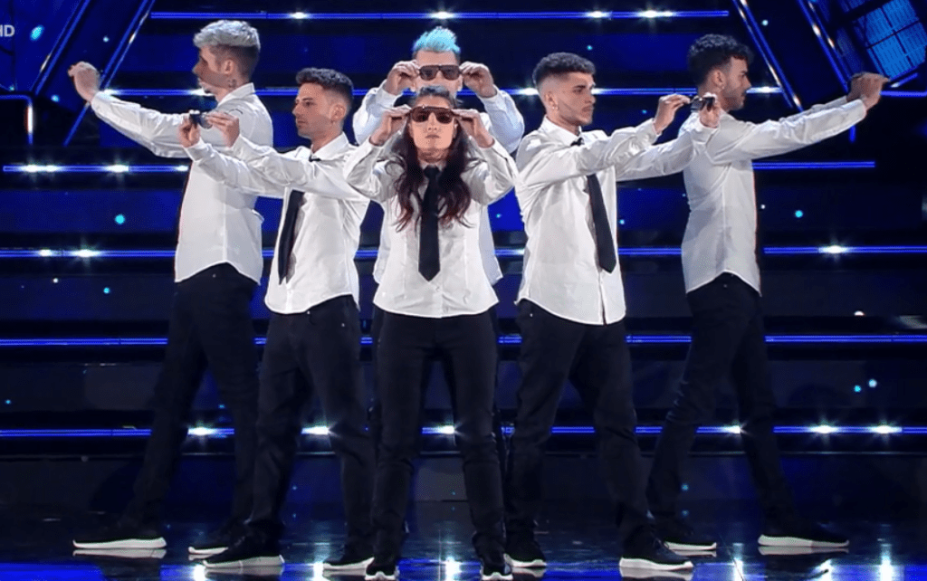 I wasn’t expecting a duo. These two seem to have a likeability factor. I like the guitar chords and the rhythm they create. Yes, it might not be a modern sound but I would listen to it on a long journey. Is it a winner? No, definitely no, but I like it especially the lyrics “Se mi guardi mi bruci” (If you look at me, you burn me).