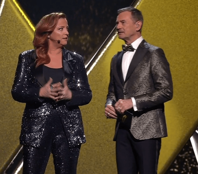 Here are our hosts for the evening, Shirley Clamp and Sweden’s Mr Eurovision, Christer Björkman
