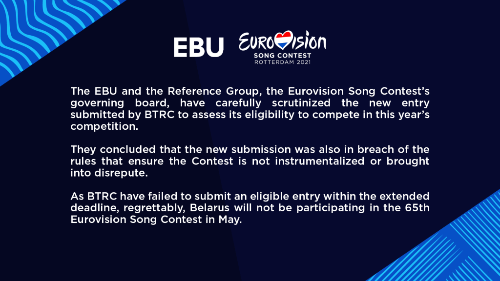 Moments ago, the European Broadcasting Union published a statement regarding the participation of Belarus at the 2021 Eurovision Song Contest. You can read it in full here: