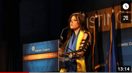 Not only did Ruslana become more widely known in the music world, she also made a name for herself on the Ukrainian political scene. After her Eurovision victory in 2004, she actively supported the democratic process in Ukraine during the Orange Revolution , declaring herself in support of Viktor Yushchenko . She attended mass rallies, supporting a re-run of the Ukrainian elections, as there were claims that the original election had been rigged in favour of pro Moscow candidate, Viktor Yanukovych . Eventually, victory went to Viktor Yushchenko, who appeared on stage with Ruslana at the Eurovision 2005 Grand Final in Kyiv, to present the winners trophy, and from Spring 2006-Summer 2007, Ruslana became a member of the Ukrainian parliament , travelling around the world , asking for support for Ukraine. Her activities often put her in serious danger, when she supported EU sanctions against President Yanukovych and Russian president Vladimir Putin in 2013-2014. As a result, she won the International Woman of Courage and Distinguished Humanitarian Leadership awards in 2014